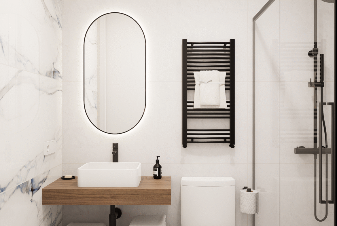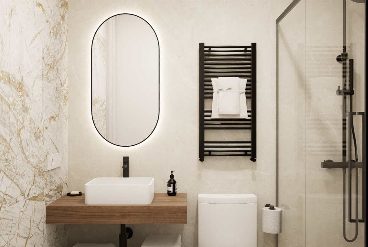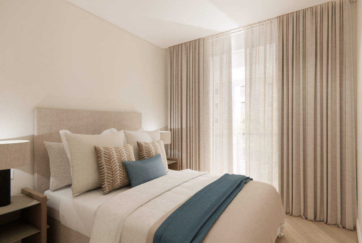 Dispone de tres dormitorios y dos baños completos, con materiales seleccionados por su calidad y armonía estética.