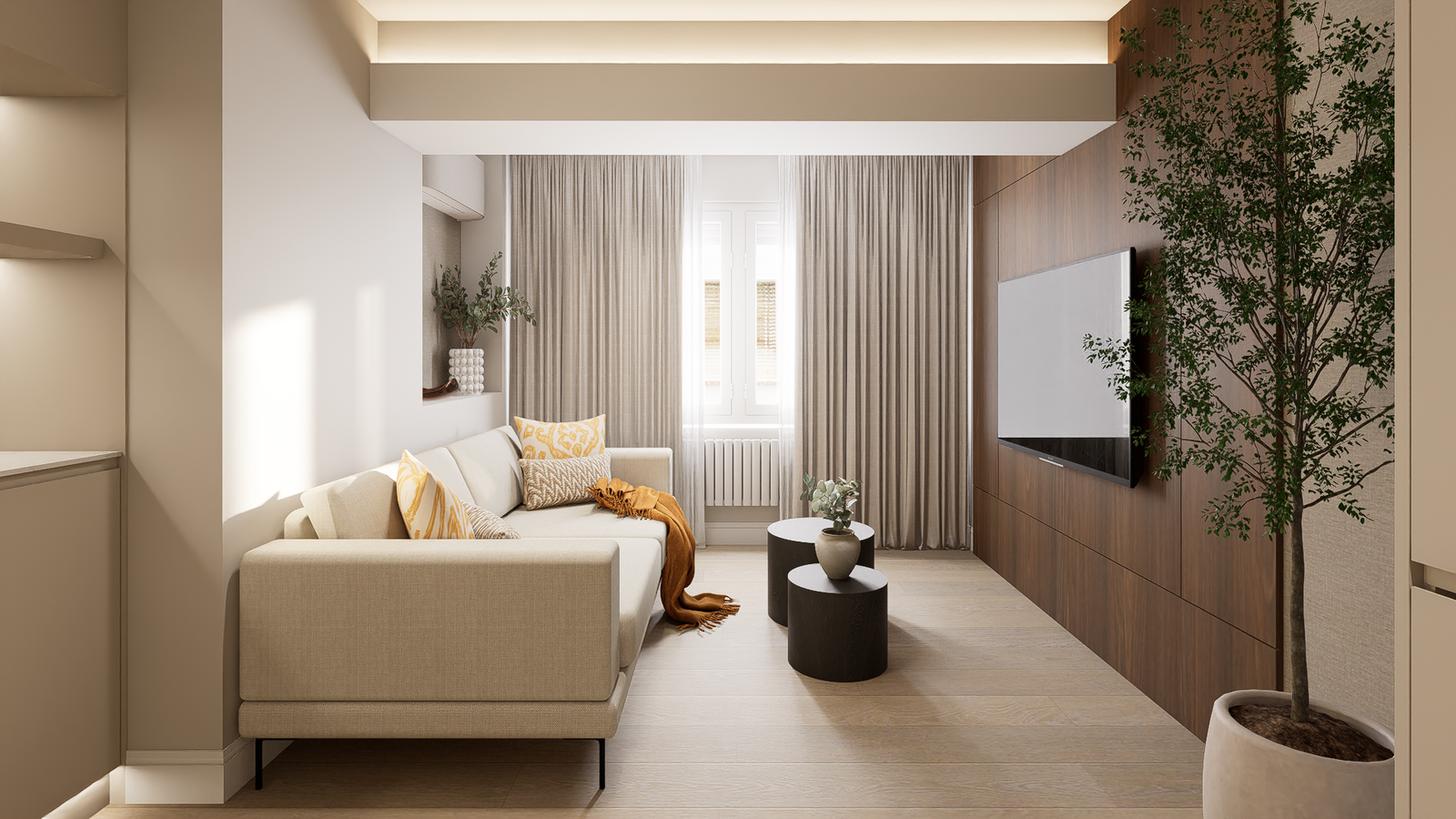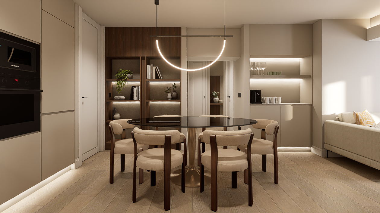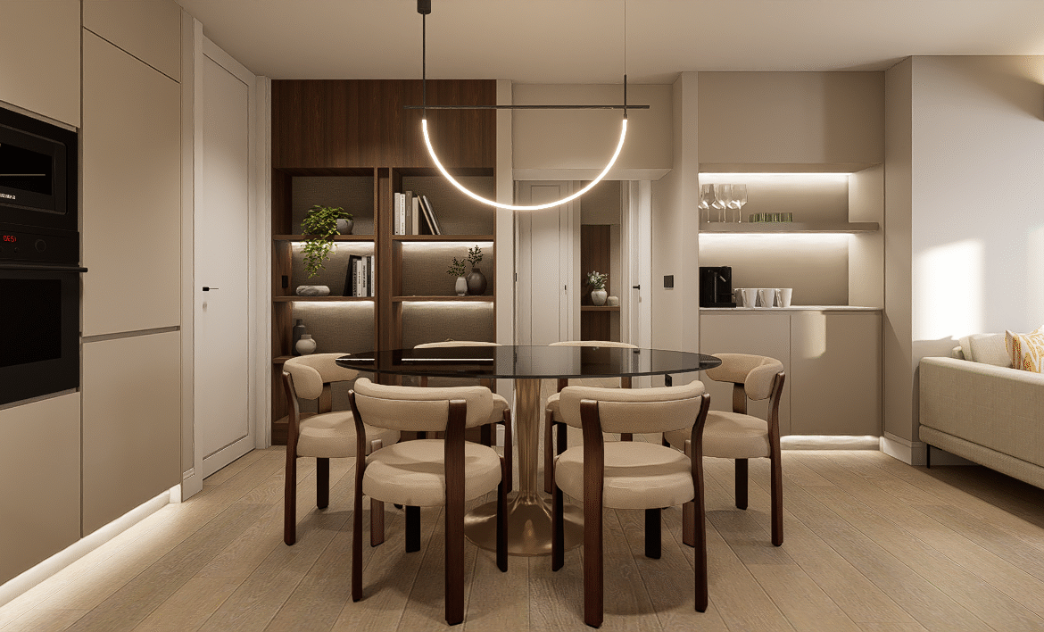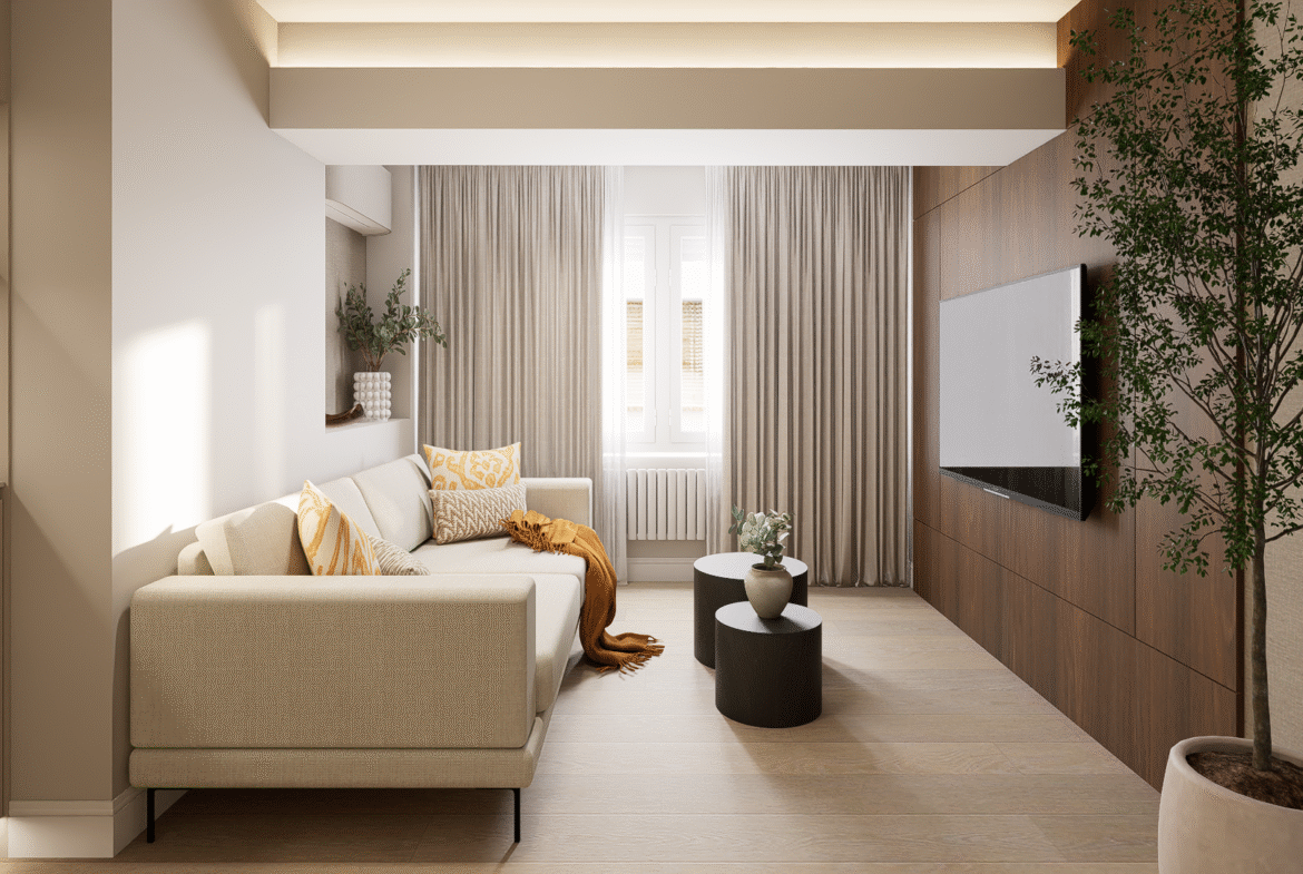 Una vivienda transformada de 58 m2 catastrales en General Oraa, en pleno Barrio de Salamanca, donde el diseño contemporáneo y la comodidad se combinan en un espacio equilibrado y funcional.