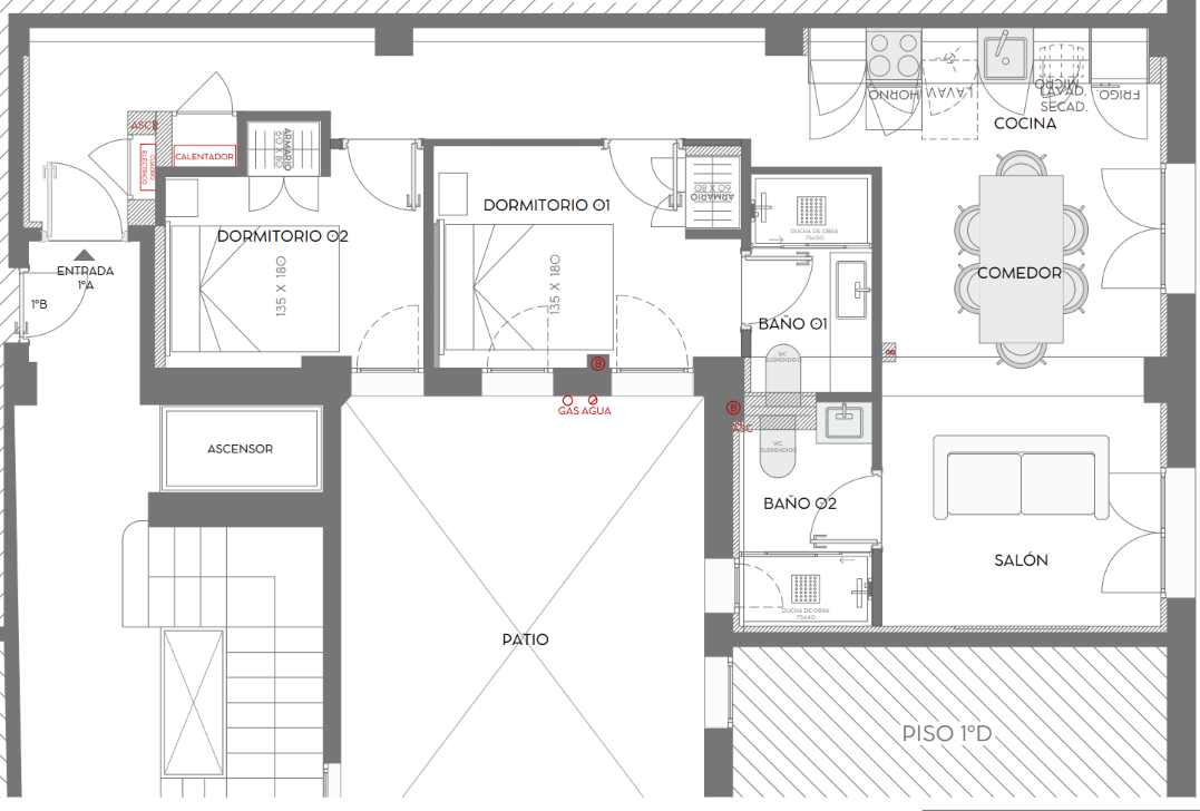 Vivienda transformada de 79 m2 catastrales, ubicada en una primera planta interior de una finca de 1960 con ascensor, en la calle Hilarión EAslava, en pleno Chamberí.