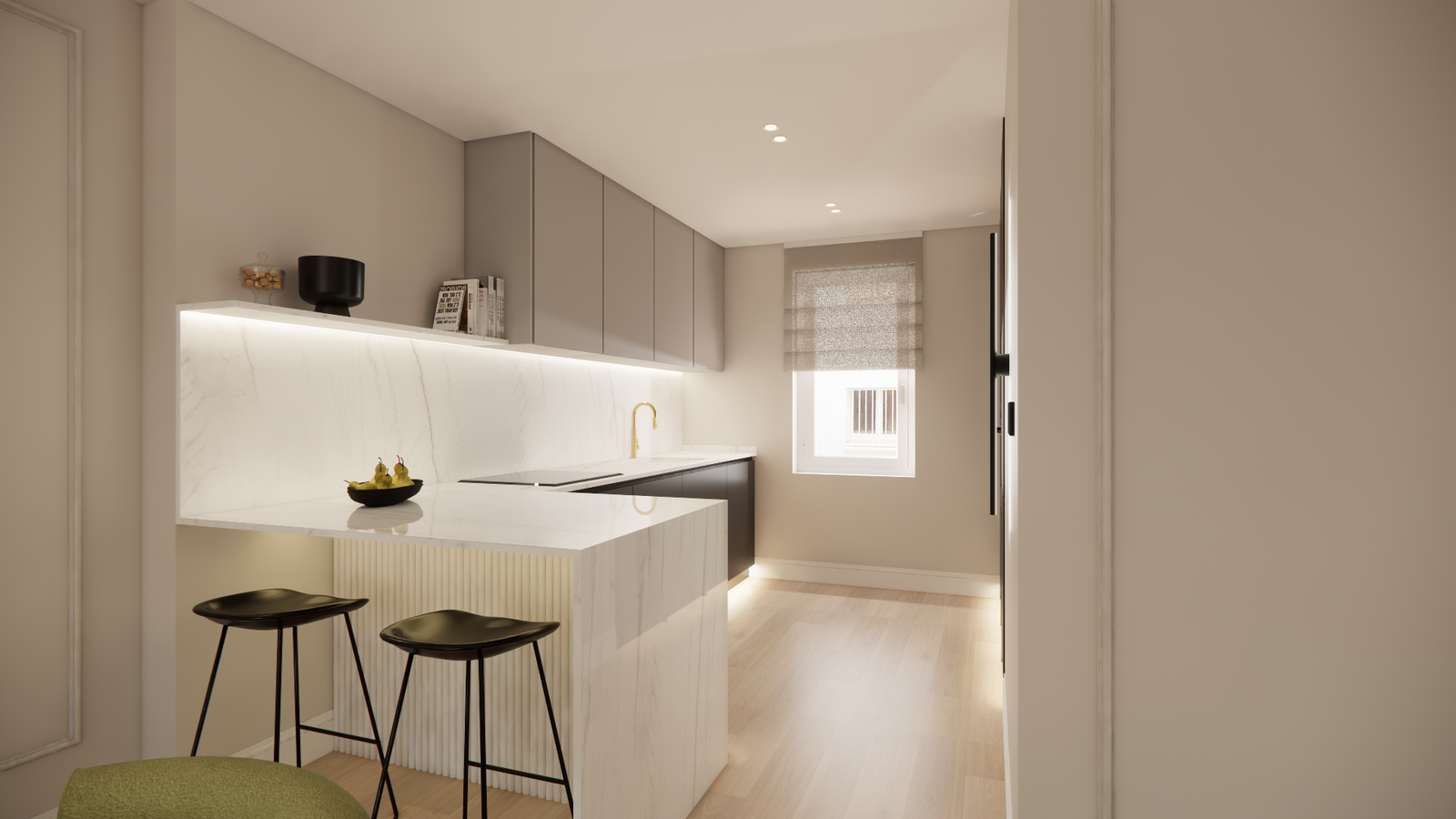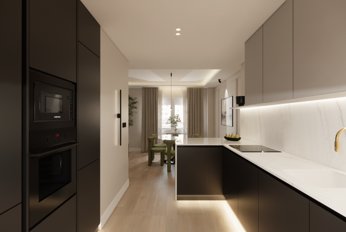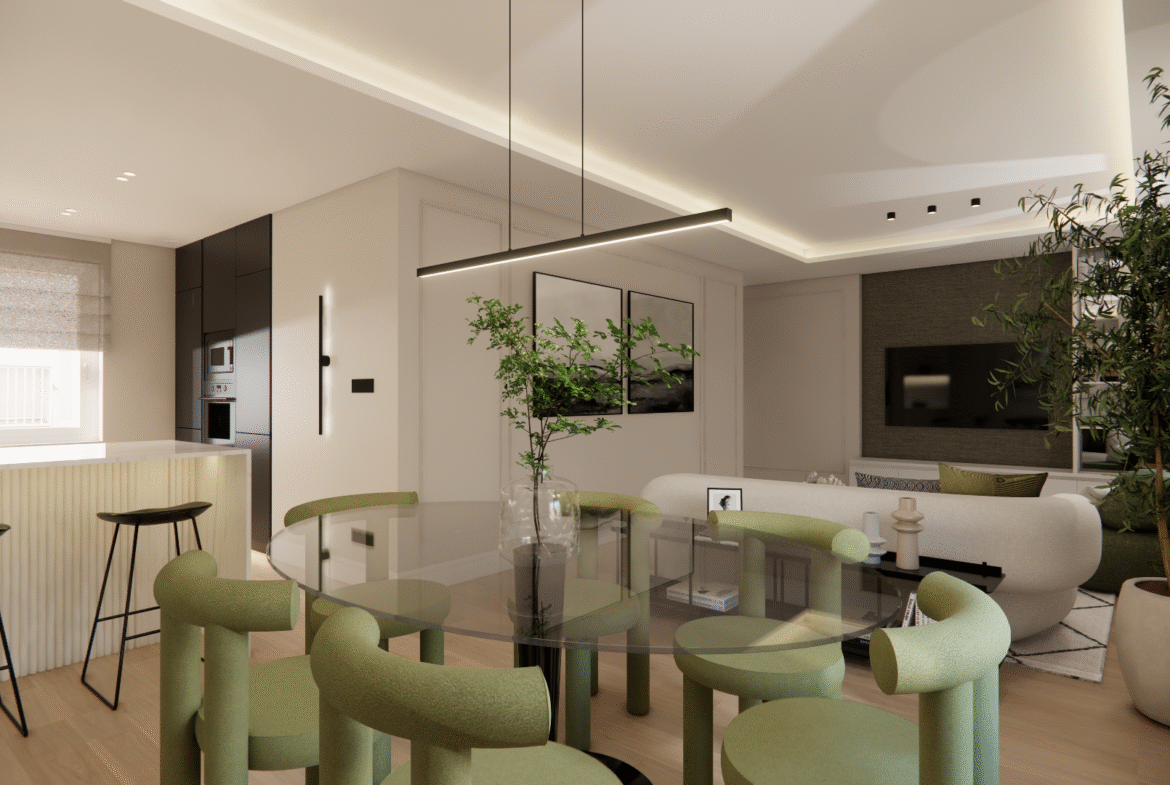 Situada en Ibiza 64, esta propiedad ha sido reformada y amueblada, ofreciendo un espacio equilibrado y acogedor. El salón-comedor, orientado al suroeste, recibe una excelente luz natural y se convierte en el eje principal de la vivienda. La cocina, totalmente equipada, se integra de forma práctica y elegante en el conjunto.