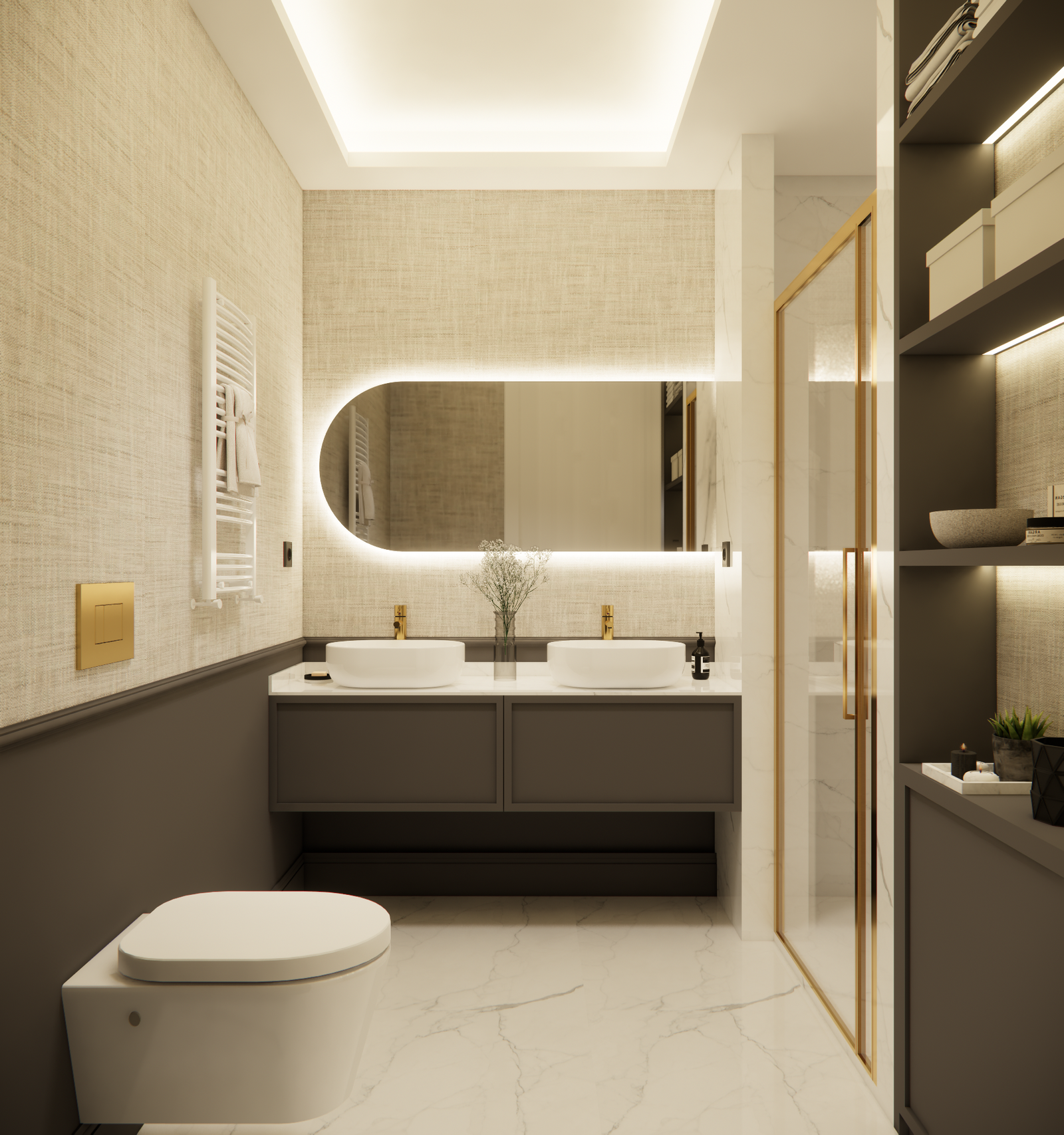La zona de descanso se compone de tres dormitorios y tres baños completos, una configuración poco habitual que aporta versatilidad y confort. La vivienda cuenta además con calefacción central y aire acondicionado por conductos, garantizando una experiencia de uso confortable durante todo el año.
