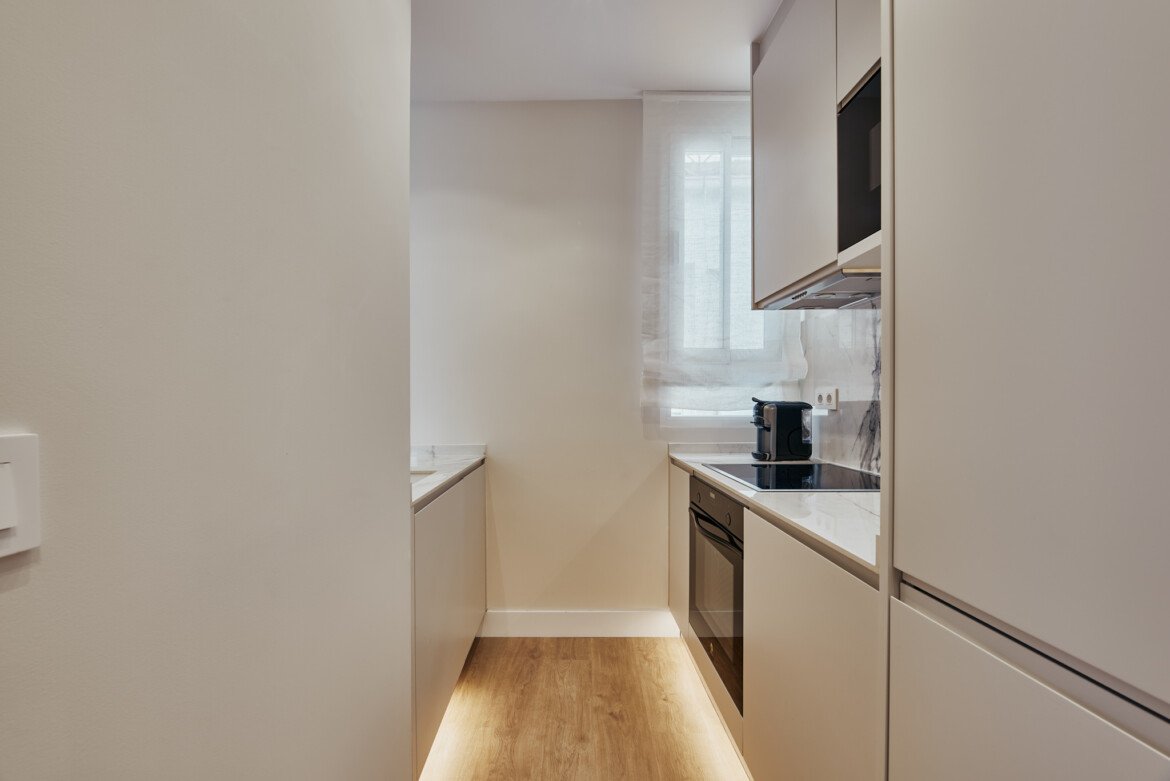 salón-comedor, cocina independiente totalmente equipada, dos dormitorios y un baño completo. Cada rincón ha sido diseñado para ofrecer equilibrio, amplitud visual y comodidad, con un estilo actual que respeta el carácter clásico de la finca.