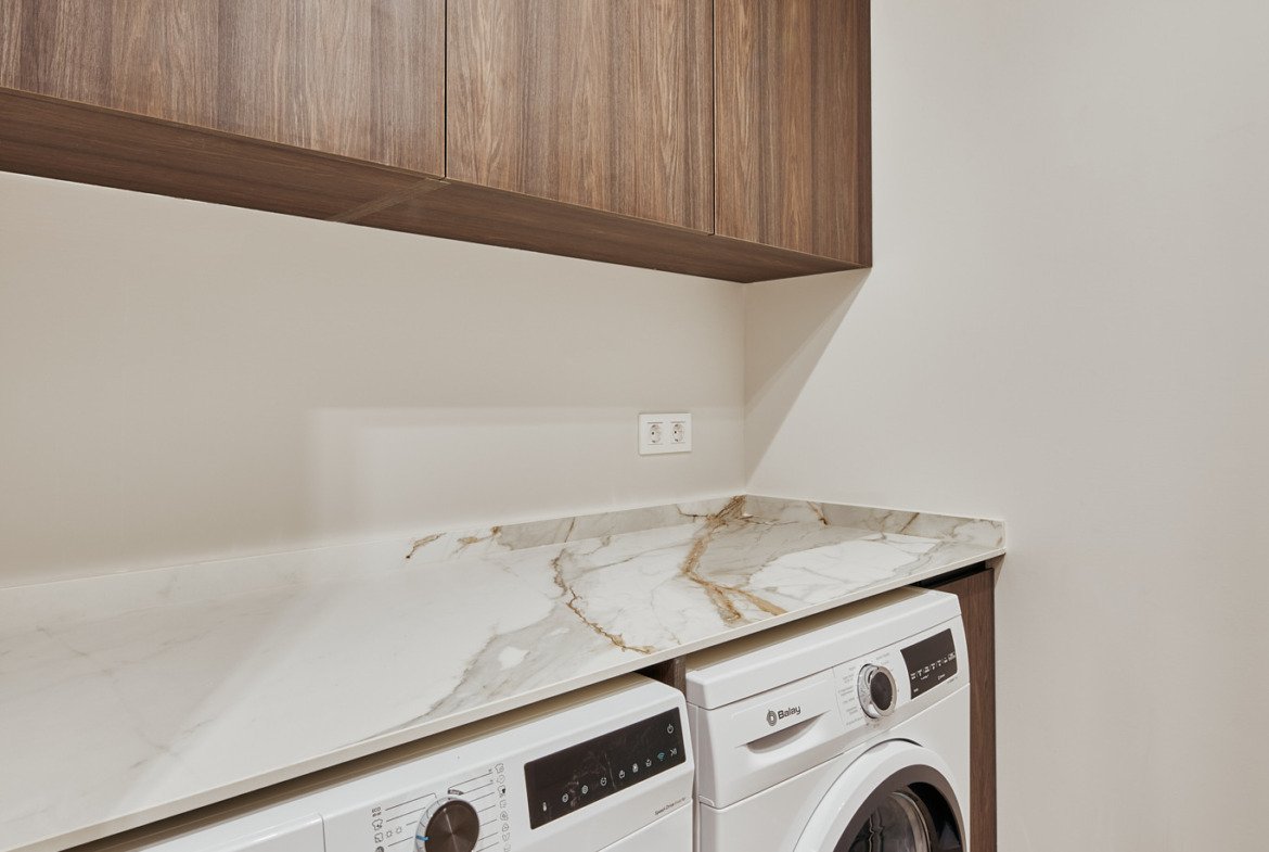 La propiedad cuenta con un amplio salón-comedor, cocina completamente equipada y tres dormitorios, acompañados por tres baños completos, configurando un espacio cómodo y bien resuelto. Además, dispone de cuarto de lavado independiente, aportando practicidad al día a día.