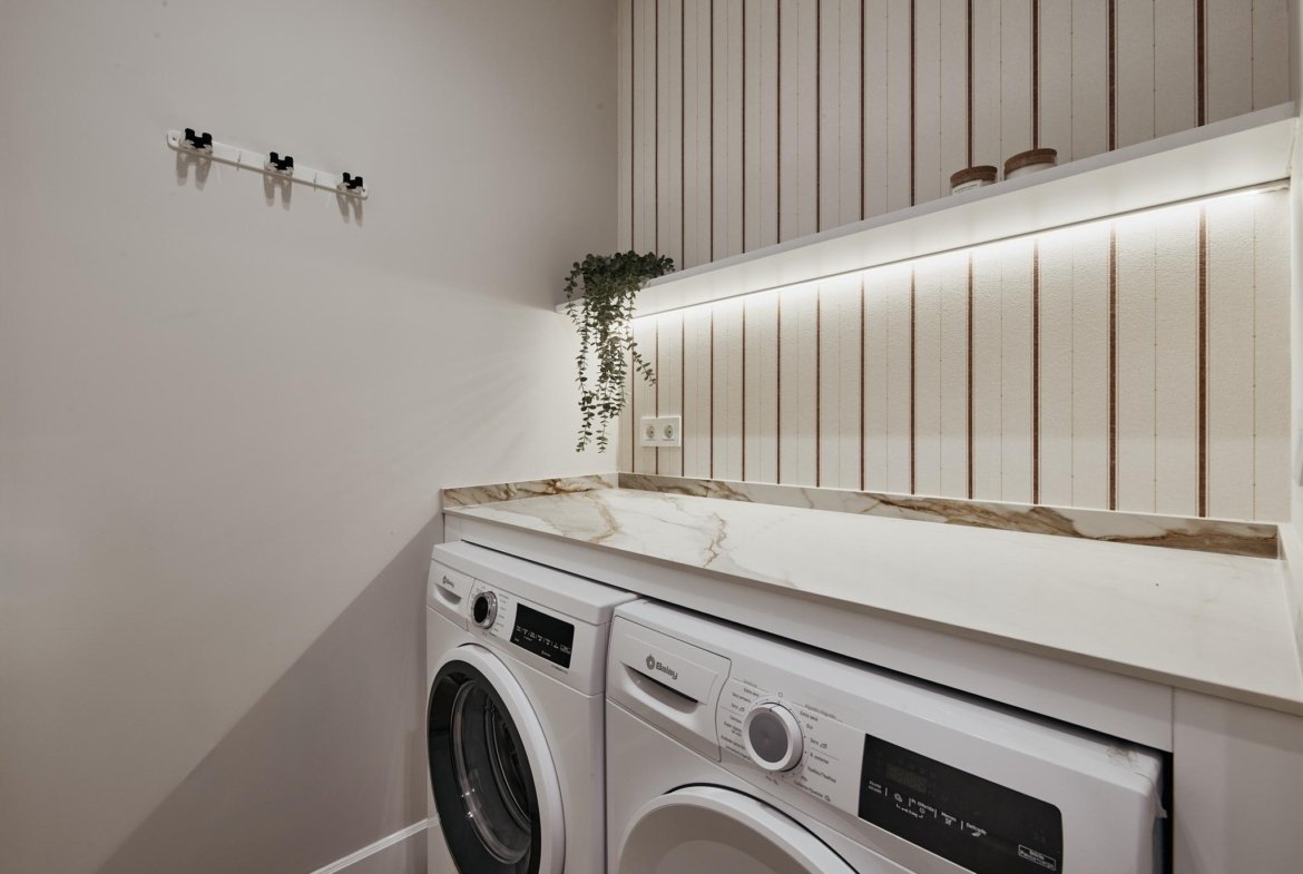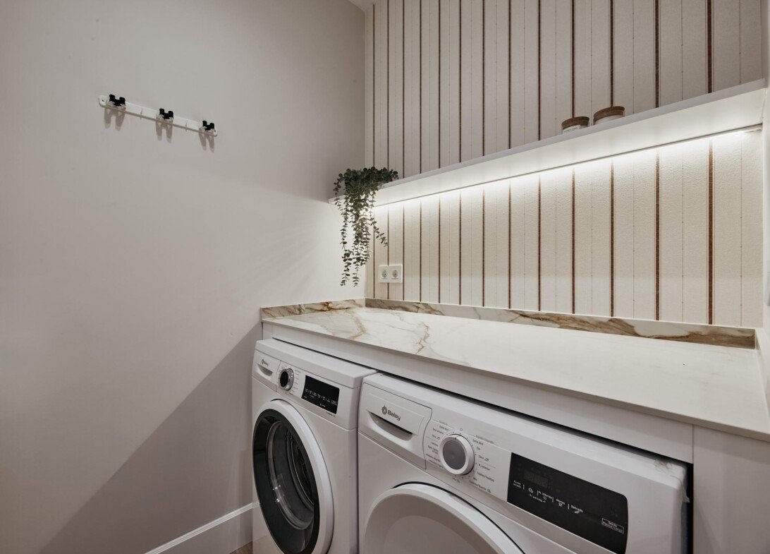 Los interiores reflejan la esencia de ArcTempus: carpintería de suelo a techo, iluminación integrada, tonos neutros y materiales nobles que aportan equilibrio y calidez.