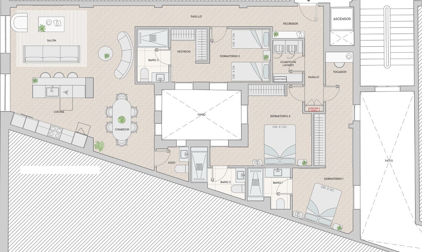 Situado en Padilla 54, este primer piso exterior ha sido transformado por el estudio ArcTempus en una vivienda donde cada espacio fluye de forma natural, aprovechando al máximo la luz y el confort.