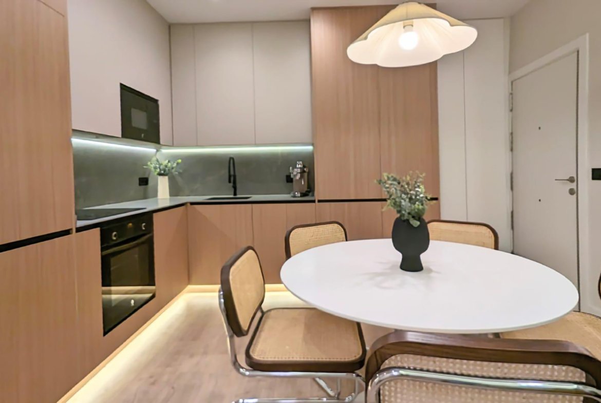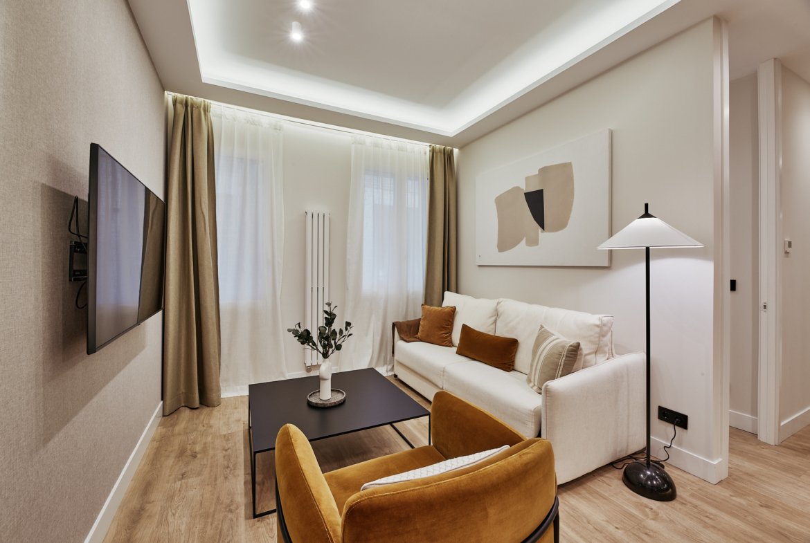 Un piso de 76 m2 catastrales que combina el diseño contemporáneo con la serenidad de los interiores clásicos del barrio de Salamanca.