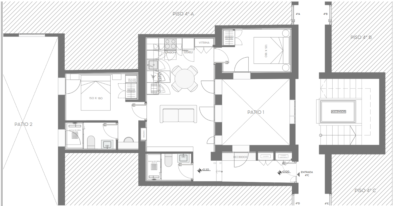 Situada en la cuarta planta de una finca clásica de 1930, la vivienda cuenta con 80 m² catastrales y ha sido diseñada para optimizar el espacio y la luz, manteniendo una estética sobria y atemporal.
